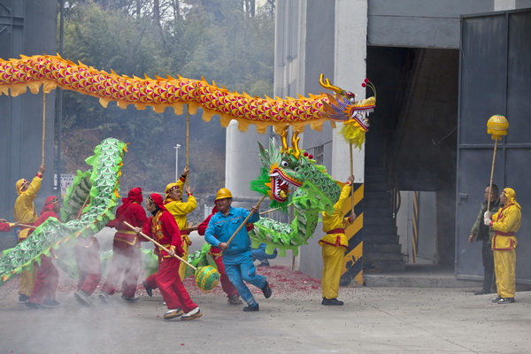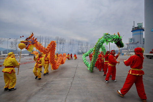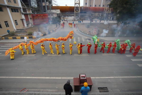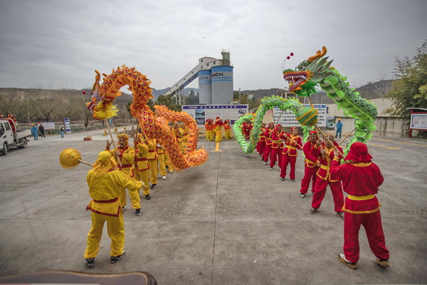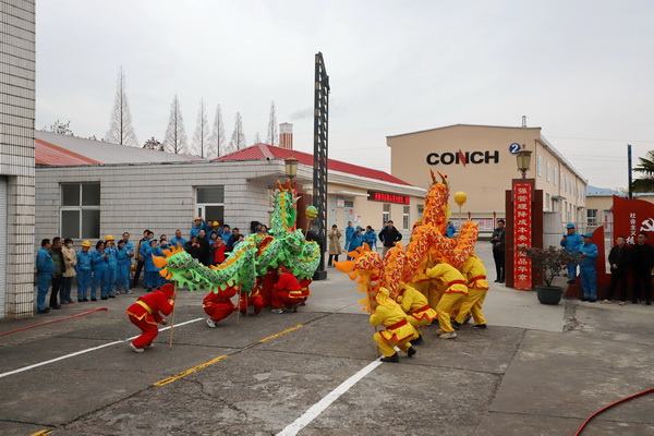 13時(shí)18分,龍獅隊(duì)回到寧國水泥廠,從海螺山下的礦山、從日產(chǎn)5000噸生產(chǎn)線,舞到海螺“母親窯”、舞到了人才培養(yǎng)基地寧國培訓(xùn)中心……所到之處,廣大員工精神振奮,滿懷一份感恩之情,表示要進(jìn)一步凝心聚力、開拓進(jìn)取,把干勁和熱情發(fā)揮到各項(xiàng)工作中去,搶抓機(jī)遇共謀寧國工廠新發(fā)展。表演過程中,干部員工積極參與到舞龍舞獅活動的表演中,共同歡度元宵佳節(jié)。期間,龍獅隊(duì)一行還前往在寧企業(yè)海螺環(huán)保和海創(chuàng)綠能進(jìn)行慰問表演,給廣大員工送去節(jié)日的祝福。