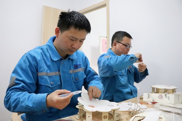與此同時(shí),“燈籠DIY”活動(dòng)也吸引了眾多員工的熱情參與。平日里力量感滿滿的男員工們,此刻也做起了“繡花活”,他們巧手制作出的燈籠既好看又有趣。活動(dòng)現(xiàn)場(chǎng)有員工家屬 、孩子們一同參加,大家共同制作出兔子燈、蓮花燈,傳遞的不僅是一份節(jié)日的溫馨,更是濃濃的家庭情誼。