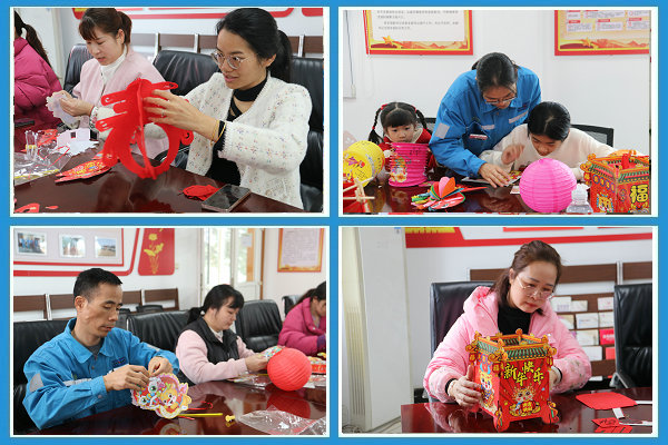 早上10:30,“燈籠DIY”活動在辦公樓二樓會議室正式拉開序幕。員工及家屬們各自挑選自己喜歡的華燈模型著手制作,不一會兒,一個個精美的燈籠從他們的巧手下制作完成??粗约壕闹谱魍瓿傻臒艋\,大家臉上都洋溢著喜悅。
