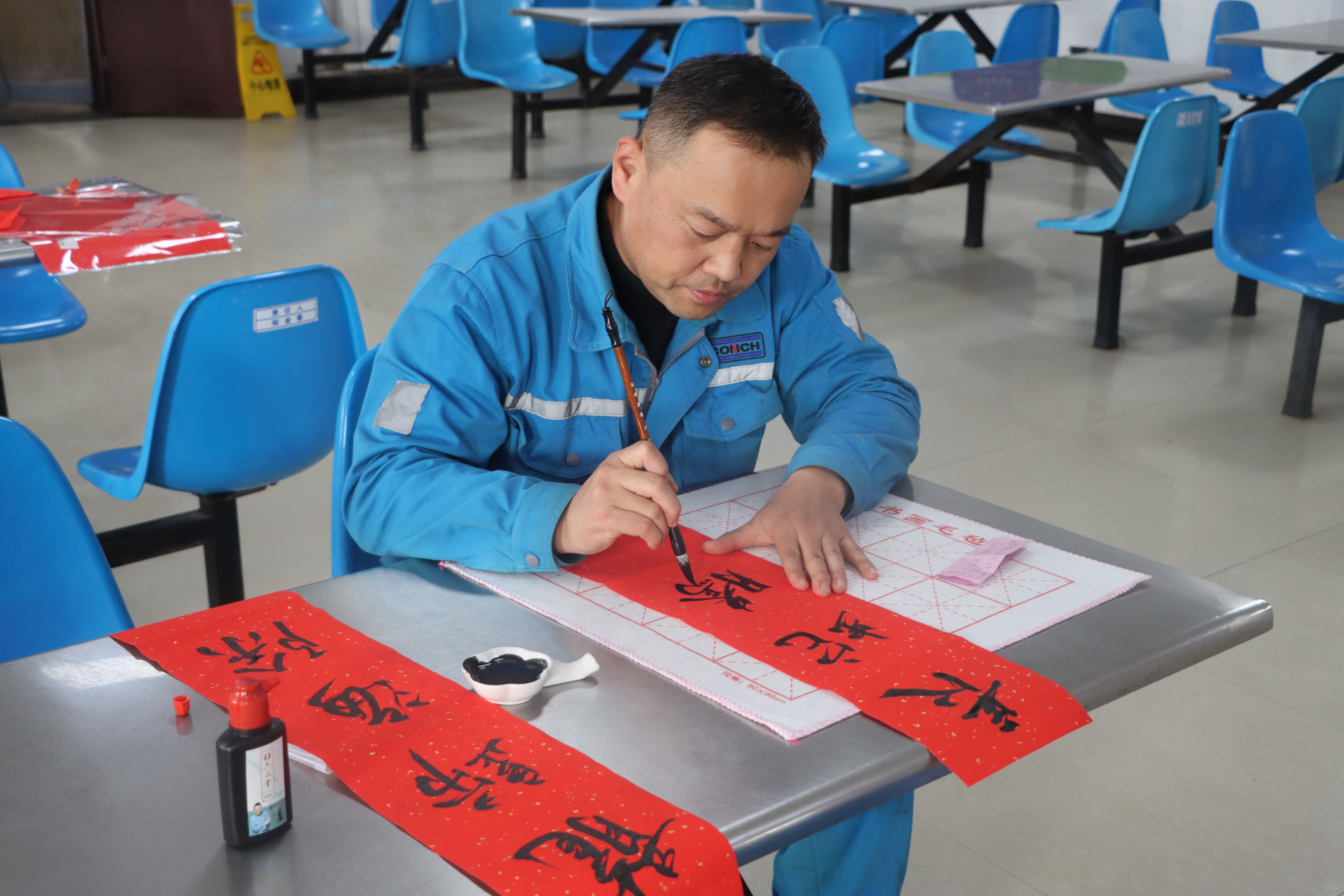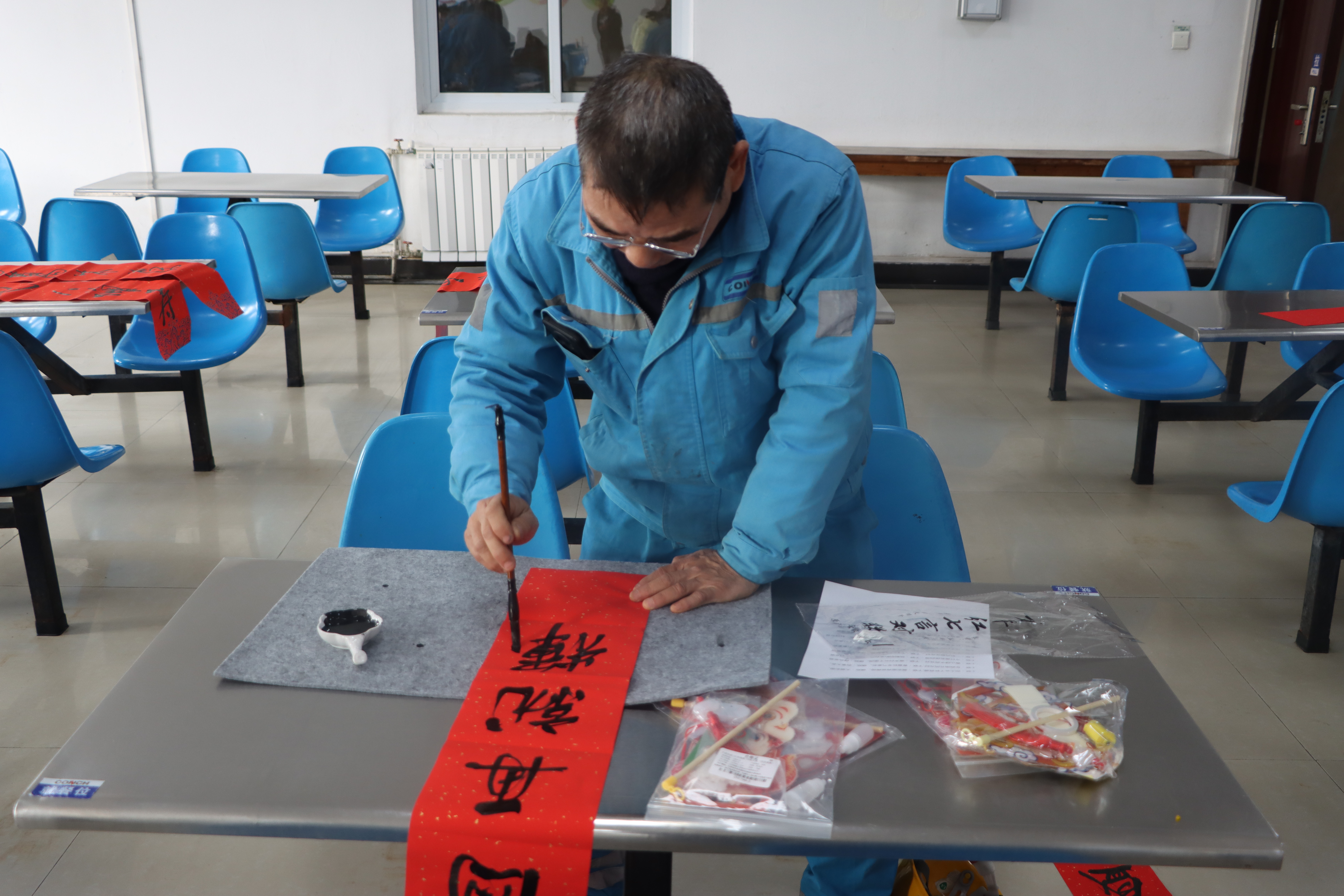 春聯(lián)寄意,福滿新春。隨著他們筆鋒的轉(zhuǎn)動(dòng),一幅幅字體靈動(dòng)、蒼勁有力的新春對(duì)聯(lián)躍然紙上,“平安如意福星照 富貴吉祥好運(yùn)來(lái)”“春臨大地百花艷 節(jié)至人間萬(wàn)象新”濃濃的情意、真誠(chéng)的祝福,飽含著對(duì)新年的美好期盼。職工們也熱情高漲,有的在一旁認(rèn)真觀摩,有的忍不住親自上陣,嘗試書(shū)寫(xiě),為即將到來(lái)的新春佳節(jié)增添了一抹書(shū)香氣息。